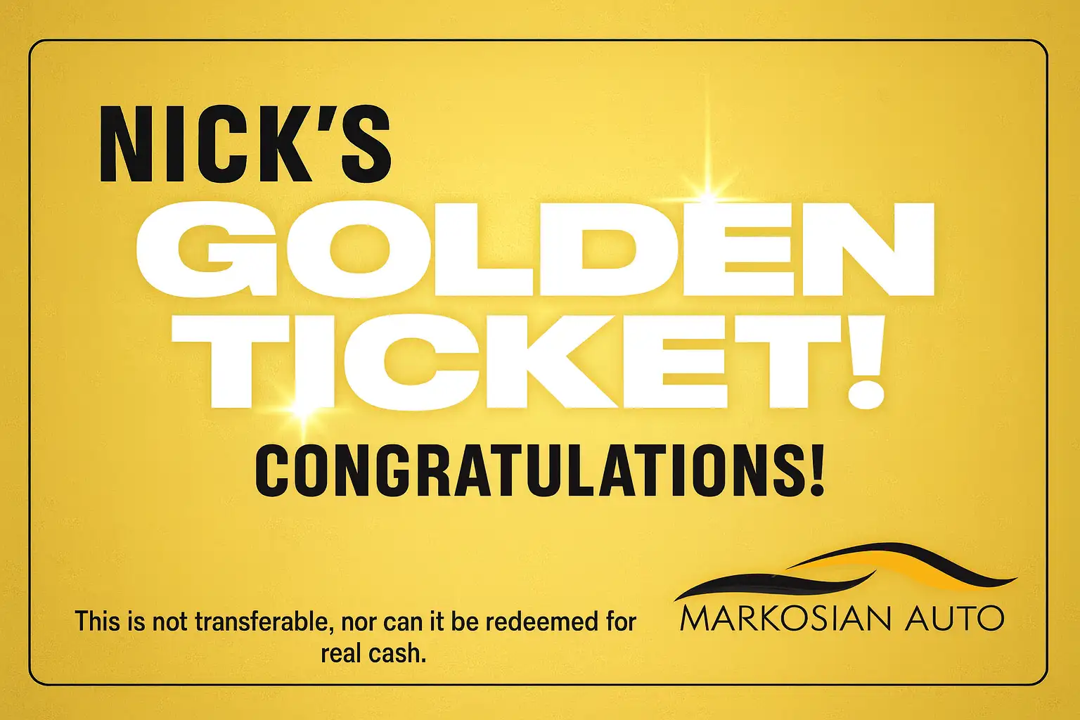 Congratulations — you are one of Markosian Auto’s top customers. You’ve been selected to take part in our exclusive Golden Ticket Program.